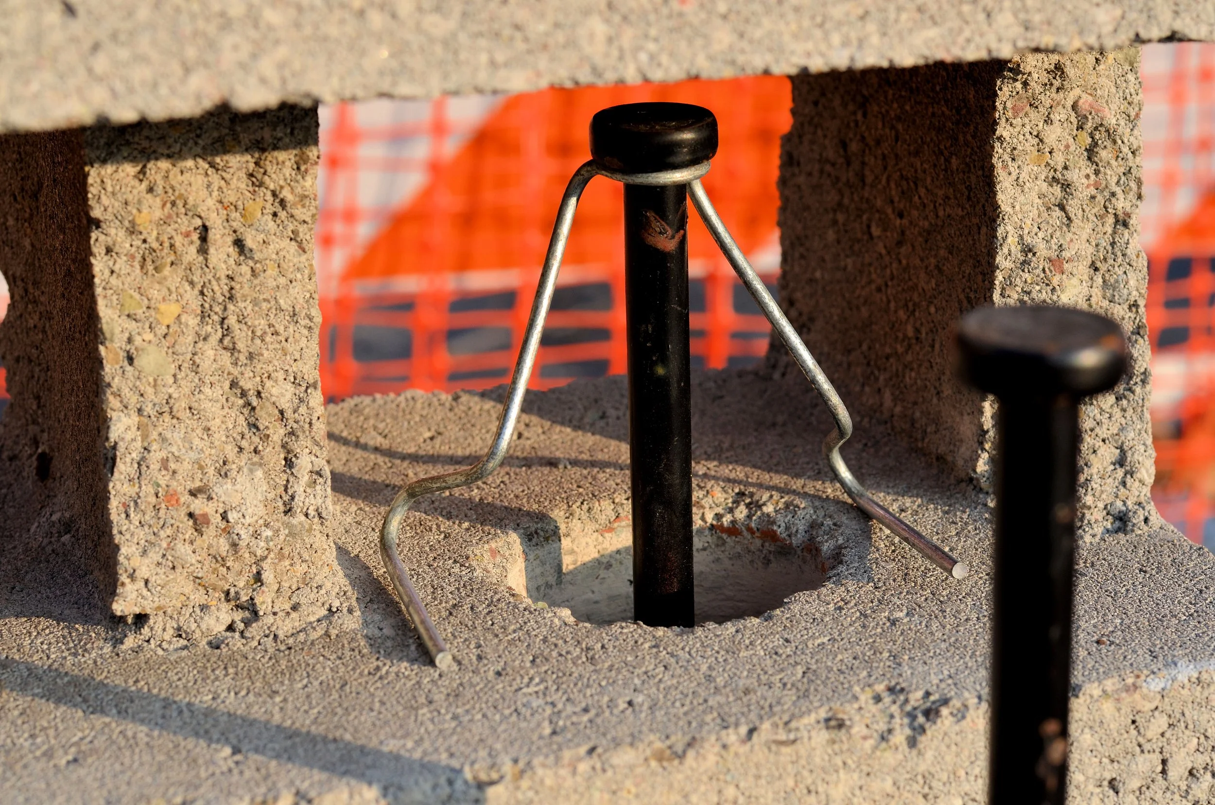 The PlateGrip is a fast, efficient way to hold an embedded plate in place. PlateGrip works on all common sized CMU. You can easily vibrate around the studs without blowout or plate displacement, and it does not interfere with reinforcing.